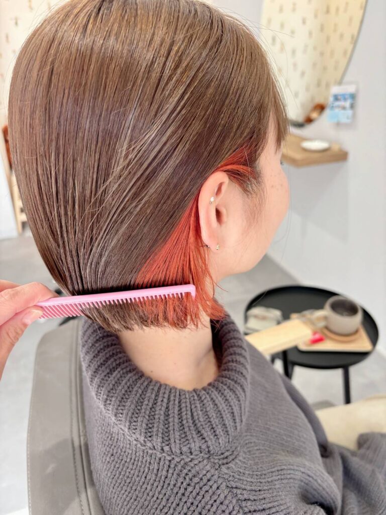 そして、最近はブリーチをしてからカラーをされるお客様が多くなってきました。今回はイヤリングカラー×オレンジ🍊